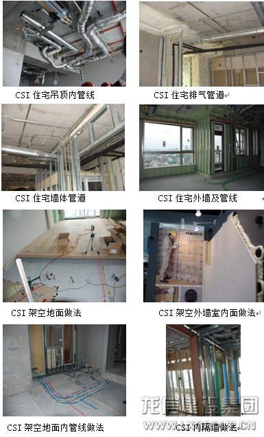 4、拼裝式CSI全裝修住宅:為了與預(yù)制裝配整體式鋼筋混凝土建筑的裝修配套,減少在預(yù)制階段管線預(yù)埋的工作量,同時(shí)方便日后裝修改造,我們與住建部住宅產(chǎn)業(yè)化促進(jìn)中心等合作研發(fā)了拼裝式CSI全裝修住宅技術(shù)。CSI住宅外部結(jié)構(gòu)支撐體采用高耐久性的預(yù)制混凝土材料,延長(zhǎng)了住宅的使用壽命。戶內(nèi)樓蓋采用整體無(wú)梁樓蓋形式設(shè)計(jì)。為便于改裝改修,盡量做到一個(gè)整體大空間,無(wú)小橫梁以及內(nèi)部結(jié)構(gòu)墻,由柱子圍繞,可使隔斷墻和各種管線自由分布;層高在現(xiàn)有室內(nèi)凈高的基礎(chǔ)上增加200mm—300mm作為架空地板層,各種管線鋪設(shè)在架空層內(nèi),相當(dāng)于每戶增加一個(gè)管道層,實(shí)現(xiàn)了同層排水;土建施工時(shí)廚房、衛(wèi)生間、內(nèi)隔墻不定位,住戶可以根據(jù)自己的需要隨意安放。