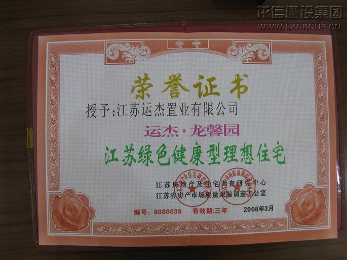 江蘇綠色健康幸理想住宅榮譽證書