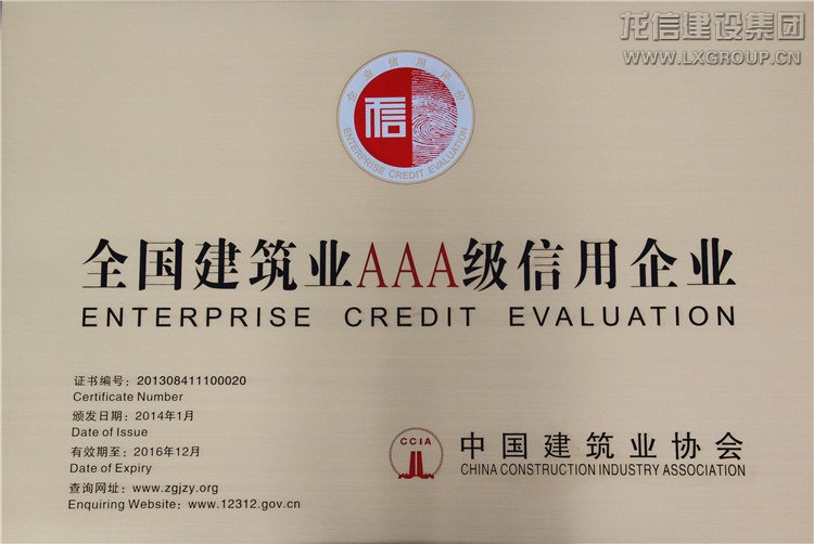 2013年獲得全國(guó)建筑業(yè)AAA級(jí)信用企業(yè)