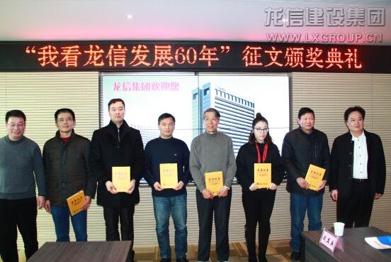 龍信集團董事長陳祖新發(fā)表了熱情洋溢的講話,陳董首先向關(guān)心龍信發(fā)展的各界人士表示感謝,對本次征文比賽獲獎人員表示祝賀。向大家介紹了集團發(fā)展歷程,龍信成立于1958年,是海門最早成立的建筑施工企業(yè),公司一直堅持以建筑為主業(yè),常年奮戰(zhàn)在全國各地,近年來參與家鄉(xiāng)建設(shè),為家鄉(xiāng)人民提供高品質(zhì)全裝修住宅和一流的服務(wù)。目前集團四板塊一中心聯(lián)動發(fā)展,形成“建筑產(chǎn)業(yè)化、綠色建筑、全裝修成品住房、養(yǎng)老產(chǎn)業(yè)”四張王牌優(yōu)勢。面對激烈的市場環(huán)境,建筑企業(yè)需不斷創(chuàng)新,變革發(fā)展,未來通過上市進一步規(guī)范企業(yè)管理,使得企業(yè)健康長久發(fā)展。陳董談到,龍信的發(fā)展還得益于優(yōu)秀文化的支撐,從創(chuàng)業(yè)之初的“老實做人、實在做事”的務(wù)實作風(fēng),到現(xiàn)在持續(xù)創(chuàng)新、追求高效、合作共贏,無不體現(xiàn)著龍信與時俱進的作風(fēng)。未來,龍信將為實現(xiàn)百年企業(yè)努力奮斗。隨后,海門市委宣傳部副部長、海門日報社社長沈健生,總編范軍、副總陳松,龍信集團董事長陳祖新、總經(jīng)理唐愛東、副總經(jīng)理何咸軍等為本次“我看龍信發(fā)展60年”征文比賽中榮獲一、二、三等獎的獲獎人員頒發(fā)獎金和證書并合影留念。獲獎代表上臺發(fā)表講話。他們紛紛表示與龍信有著不解之緣,多年來一直關(guān)注龍信的發(fā)展,通過這次征文活動,對龍信有了更為直觀的了解。獲獎代表共同祝愿龍信發(fā)展騰飛,期待實現(xiàn)百年龍信的宏偉目標(biāo)!最后,所有嘉賓在龍信大廈前合影留念。