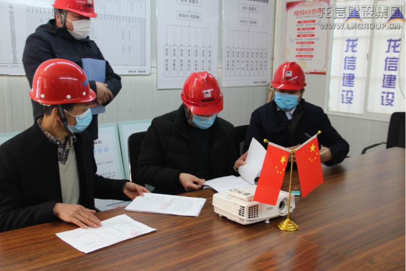 現(xiàn)場檢查結束后,龍信集團黨委書記、董事長陳祖新在項目部會議室對疫情防控和復工、安全生產(chǎn)等進行再部署、再細化。他指出,要堅決貫徹中央和省市委要求,嚴格落實項目現(xiàn)場防疫管控工作,細化落實項目部封閉式管理中人員和車輛進出通道設置、進場人員個人健康情況監(jiān)測和個人防護措施檢查、外地勞務人員情況排查、安全生產(chǎn)等加強管理,嚴格落實復工標準,盡可能降低疫情造成的影響,確保疫情防控和復工復產(chǎn)兩不誤、雙促進,建好房、力促百姓安居樂業(yè)。