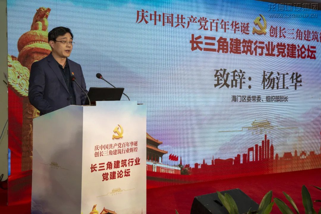會上,海門區(qū)委常委、組織部部長楊江華致辭,他指出,海門是聞名遐邇的建筑之鄉(xiāng)。今年是“十四五”開局之年,海門正加快推進建筑企業(yè)現(xiàn)代化轉(zhuǎn)型的步伐,而龍信集團始終走在前列,為推動海門建筑全產(chǎn)業(yè)鏈協(xié)同發(fā)展,推廣綠色建筑、智慧建筑創(chuàng)新發(fā)展提供了參考。這一成績的取得與龍信集團始終堅持黨的領(lǐng)導息息相關(guān),希望更多的企業(yè)牢固樹立“抓黨建就是抓發(fā)展,企業(yè)發(fā)展必須抓黨建”的原則,以黨建工作的高質(zhì)量保證企業(yè)發(fā)展的高質(zhì)量。希望更多人士關(guān)注海門、來到海門、建設(shè)海門,也希望更多的企業(yè)把黨建工作作為引領(lǐng)公司發(fā)展的不竭動力。