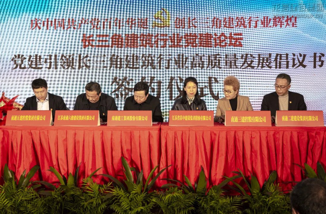 論壇上,長三角建筑行業(yè)黨建論壇揭牌,由安徽省建筑設(shè)計研究總院股份有限公司、沈陽建筑大學、中天建設(shè)集團有限公司、上海海怡建設(shè)(集團)有限公司、上海華東房產(chǎn)設(shè)計院有限公司、南通三建控股集團有限公司、江蘇省蘇中建設(shè)集團股份有限公司、南通建工集團股份有限公司、江蘇南通六建建設(shè)集團有限公司、南通五建控股集團有限公司、南通二建建設(shè)集團有限公司、龍信建設(shè)集團有限公司12家企業(yè)共同聯(lián)合發(fā)起《黨建引領(lǐng)長三角建筑行業(yè)高質(zhì)量發(fā)展倡議書》?!冻h書》指出,長三角一體化的步伐鏗鏘有力、建筑業(yè)轉(zhuǎn)型升級高質(zhì)量發(fā)展的藍圖已躍然紙上。未來,長三角區(qū)域里的建筑業(yè)企業(yè),將堅持黨建引領(lǐng)企業(yè)發(fā)展,以踏實肯干的“老黃牛”精神、敬業(yè)奉獻的“孺子牛”精神、敢闖敢干的“初生牛犢”精神,朝著高質(zhì)量發(fā)展的目標高歌猛進、再立新功,打好“十四五”之戰(zhàn)!