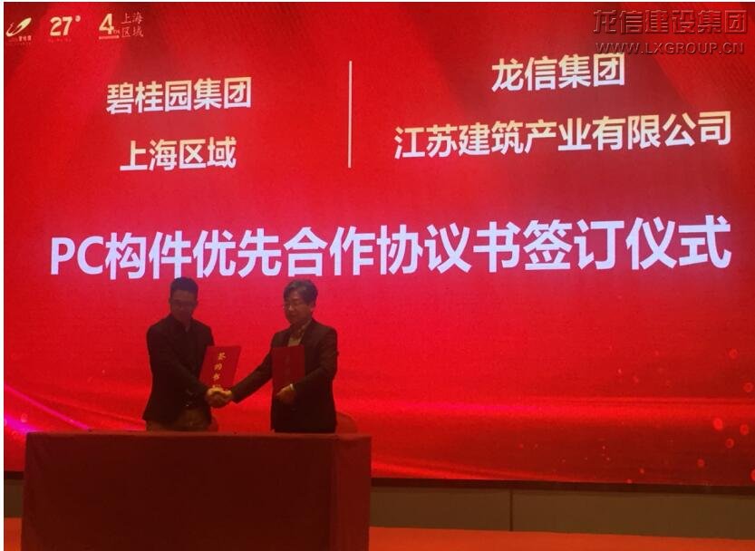 碧桂園上海區(qū)域與龍信集團(tuán)簽訂總承包工程優(yōu)先合作框架協(xié)議書,與龍信集團(tuán)江蘇建筑產(chǎn)業(yè)有限公司簽訂PC構(gòu)件優(yōu)先合作框架協(xié)議書。