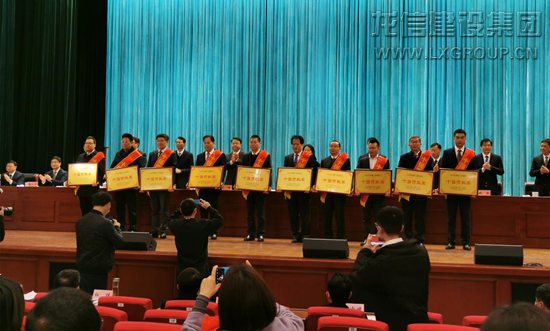 龍信集團榮獲“國家優(yōu)質(zhì)工程”“詹天佑住宅優(yōu)秀小區(qū)金獎”,集團常務副總何咸軍、安全總監(jiān)馬漢忠、總工程師殷廣玉共同上臺領獎