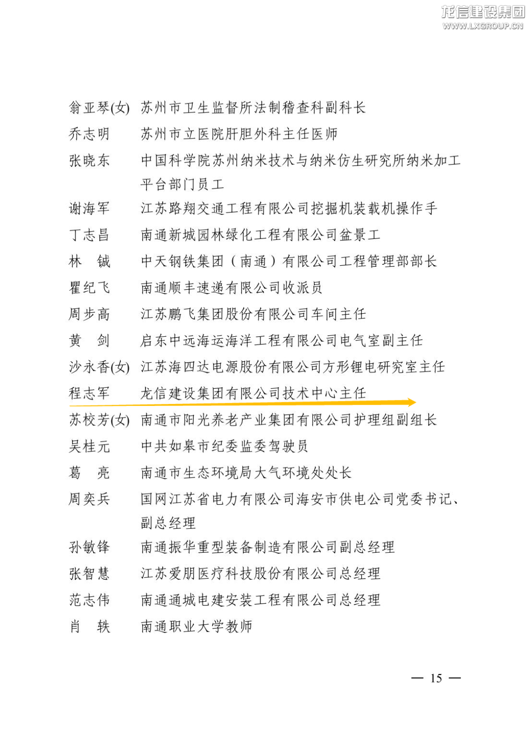 龍信建設(shè)集團技術(shù)中心主任程志軍榮獲“江蘇省五一勞動獎?wù)?rdquo;。