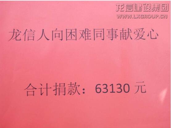 南京區(qū)域公司員工王二寶,2012年進(jìn)入龍信從事鋼筋翻樣工作,該同志吃苦耐勞,對(duì)工作認(rèn)真負(fù)責(zé),深受項(xiàng)目部領(lǐng)導(dǎo)好評(píng)。王二寶家住江蘇泗陽,其妻在家務(wù)農(nóng),兩個(gè)孩子均上學(xué)讀書,其家庭主要靠王二寶工資來養(yǎng)家糊口,日子雖然過得清苦,但也其樂融融。天有不測風(fēng)云,人有旦夕禍福,2017年底,其妻被檢查出乳腺癌,手術(shù)加后期6次化療等費(fèi)用預(yù)計(jì)需25萬元左右。面對(duì)突如其來的家庭變故,王二寶不得不舉債為妻治病,家庭條件也因病致貧。