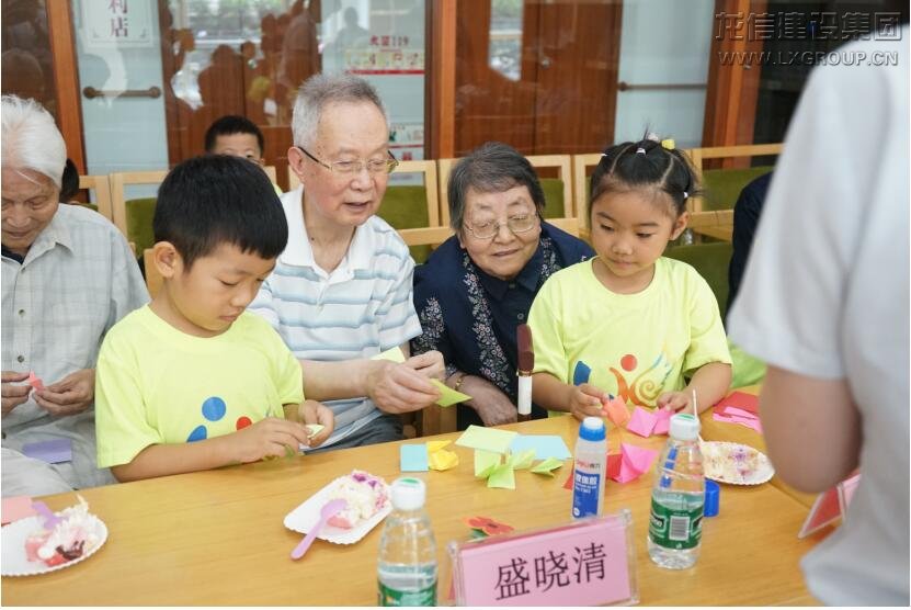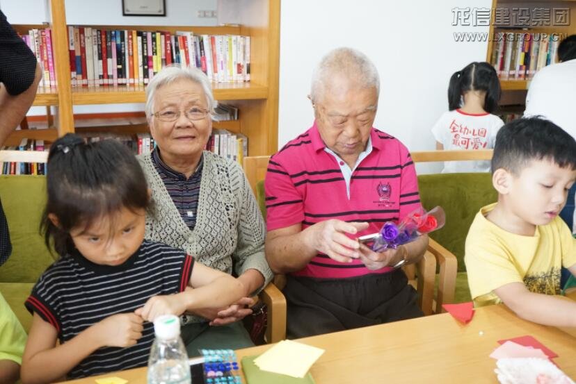 圖為小朋友與長(zhǎng)者們一起制作手工