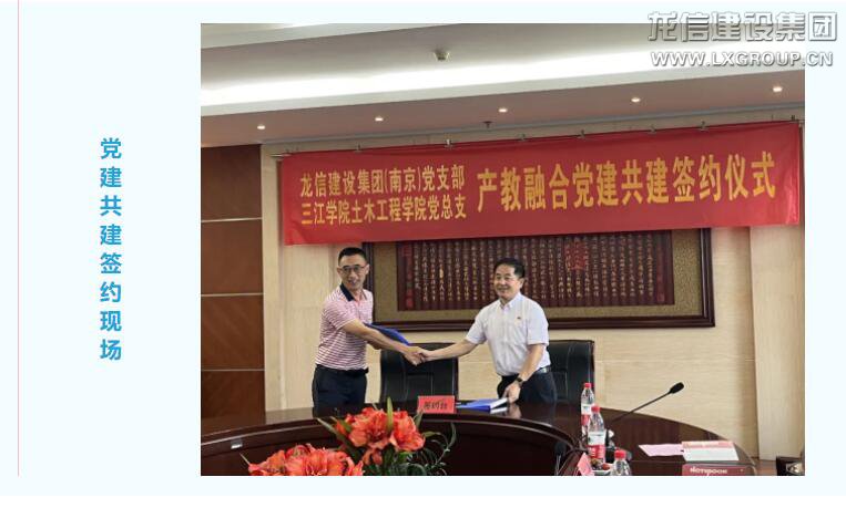 最后,王希賓書記、費(fèi)永新副書記代表校企雙方進(jìn)行了校企黨建共建合作協(xié)議的簽約。此次簽約,標(biāo)志著三江學(xué)院土木工程學(xué)院與龍信集團(tuán)在黨建共建合作辦學(xué)、技術(shù)合作等方面邁出了堅實的一步。