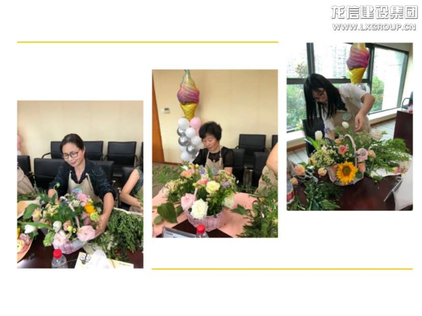 參觀結束,高管家屬在龍信大廈二樓會議室進行座談并開展插花活動。座談中,大家表達了各自想法,肯定了公司近來年的發(fā)展,對公司給予的關心關愛表示感謝,祝愿公司在新時代高質量進程中,跑出發(fā)展加速度,創(chuàng)造更加美好的明天!隨后進行的插花活動中,花藝老師介紹了鮮花名稱、特點及花籃制作步驟。大家在這一過程中,不僅欣賞到花的自然美,還體驗到人與大自然,人與藝術的交流,陶冶情操的同時提升了藝術修養(yǎng)。